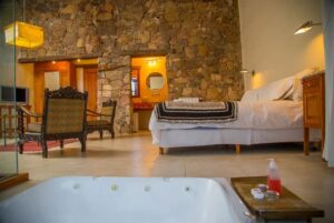 2 Cabañas: Alejadas del casco del hotel y elevadas sobre prados y piedra. Espaciosas y cómodas, con jacuzzi en suite. Con hermosas vistas hacia las Sierras y el Valle. Equipadas con: Hidromasaje