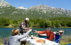 Programa de pesca. Incluye un guía de pesca en privado, alojamiento y pensión completa. Las, salidas se planifican de manera variada se acuerdo a donde se encuentre la mejor pesca según la época: pesca embarcada, desde la costa o en un radio de hasta 20 km desde el hotel (Laguna de los Césares, Lago Fonck, Lago Roca; Lago Los Moscos; Lago Hess y río Manso Medio). En caso de que acompañantes no sean pescadores, se aplica para los no pescadores la tarifa Base.
